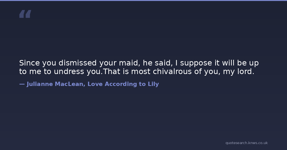 Since you dismissed your maid, he said, I suppose it will be up to me to undress you.That is most chivalrous of you, my lord.