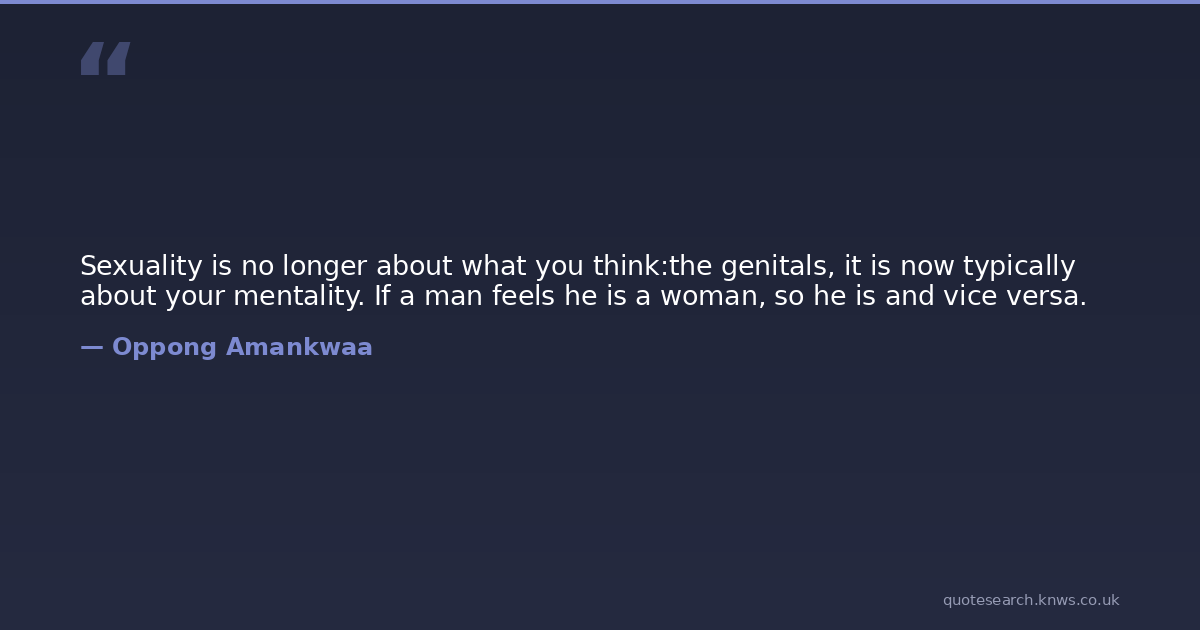 Sexuality is no longer about what you think:the genitals, it is now typically about your mentality. If a man feels he is a woman, so he is and vice versa.