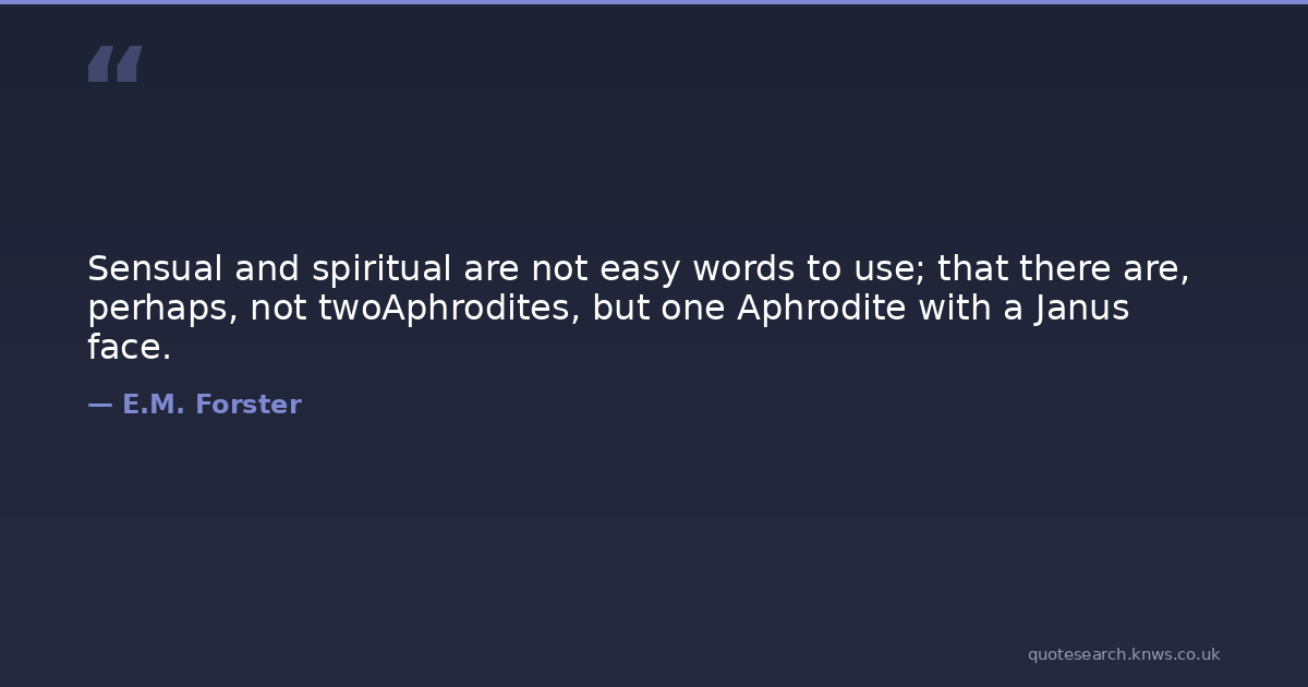 Sensual and spiritual are not easy words to use; that there are, perhaps, not twoAphrodites, but one Aphrodite with a Janus face.