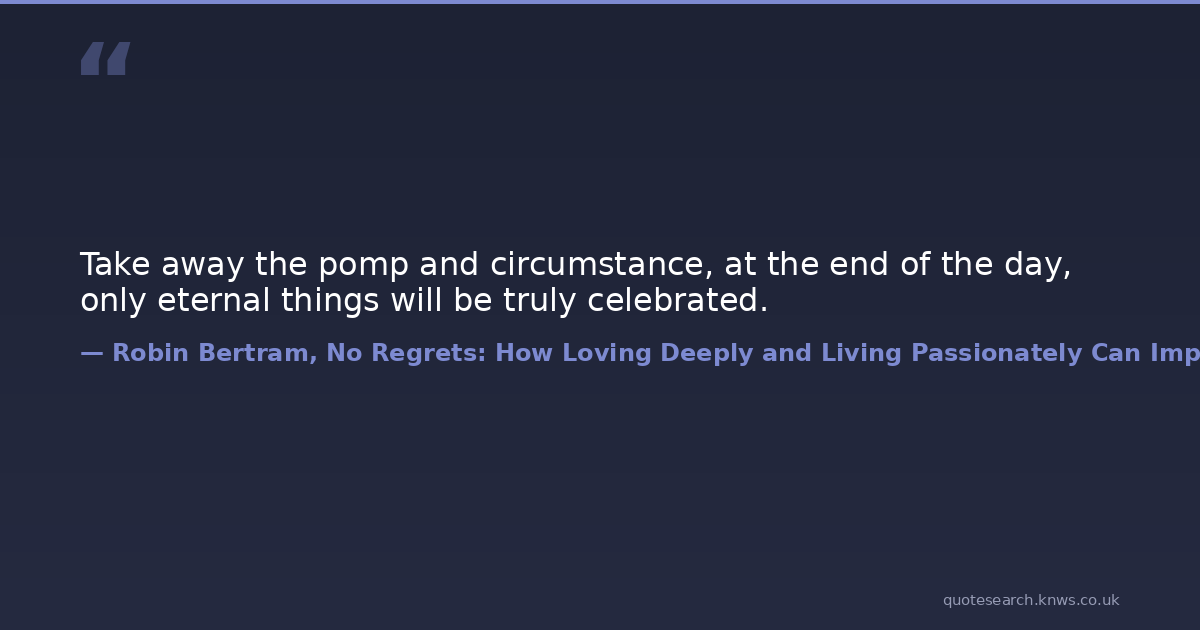 Take away the pomp and circumstance, at the end of the day, only eternal things will be truly celebrated.