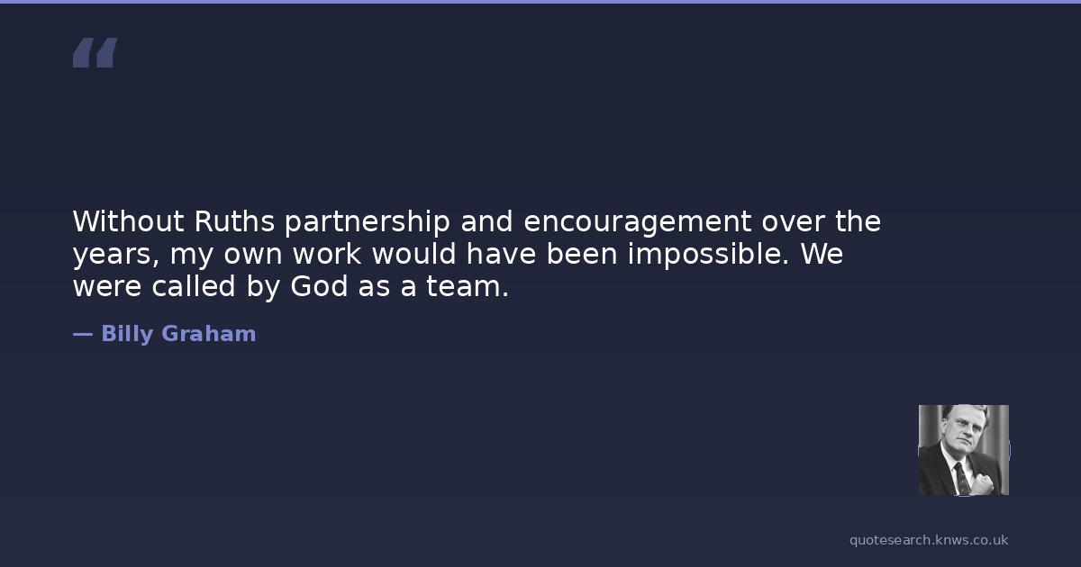 Without Ruths partnership and encouragement over the years, my own work would have been impossible. We were called by God as a team.