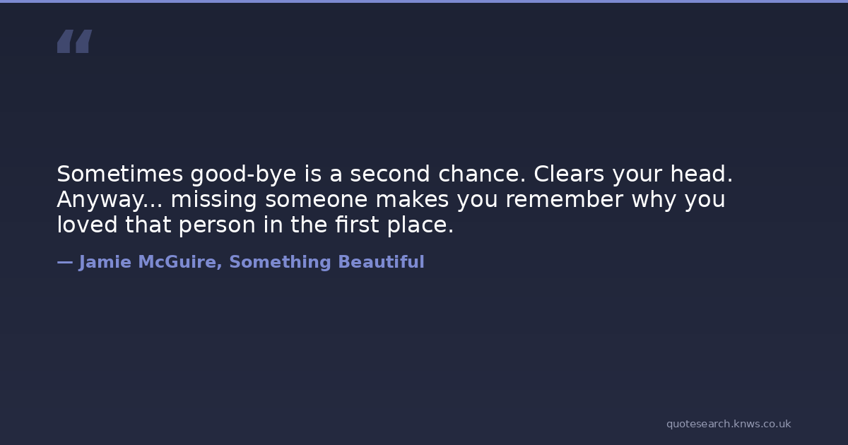Sometimes good-bye is a second chance. Clears your head. Anyway... missing someone makes you remember why you loved that person in the first place.