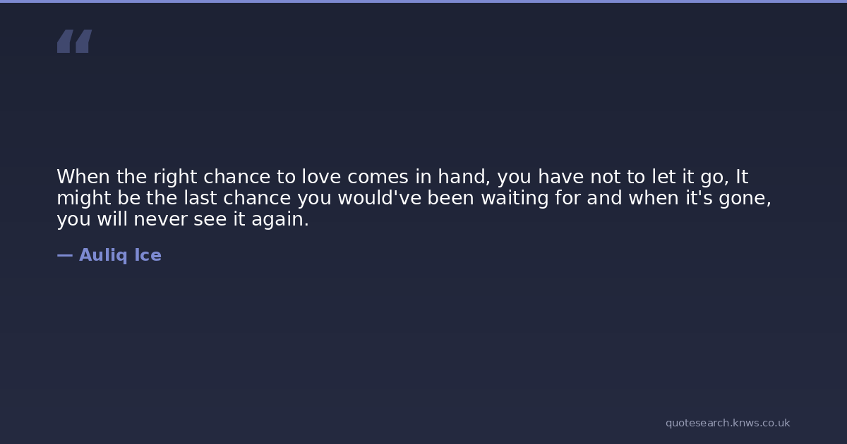 When the right chance to love comes in hand, you have not to let it go, It might be the last chance you would've been waiting for and when it's gone, you will never see it again.