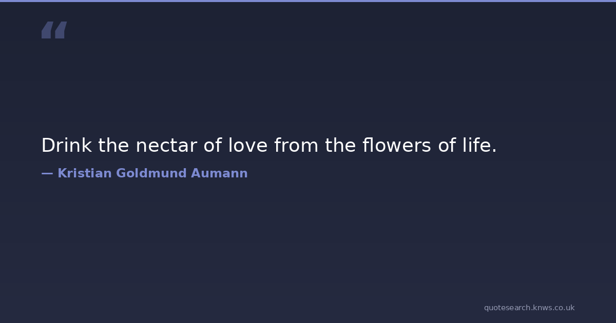 Drink the nectar of love from the flowers of life. love-quote nectar-of-love Download Image Share on X Share on Facebook Copy Link
