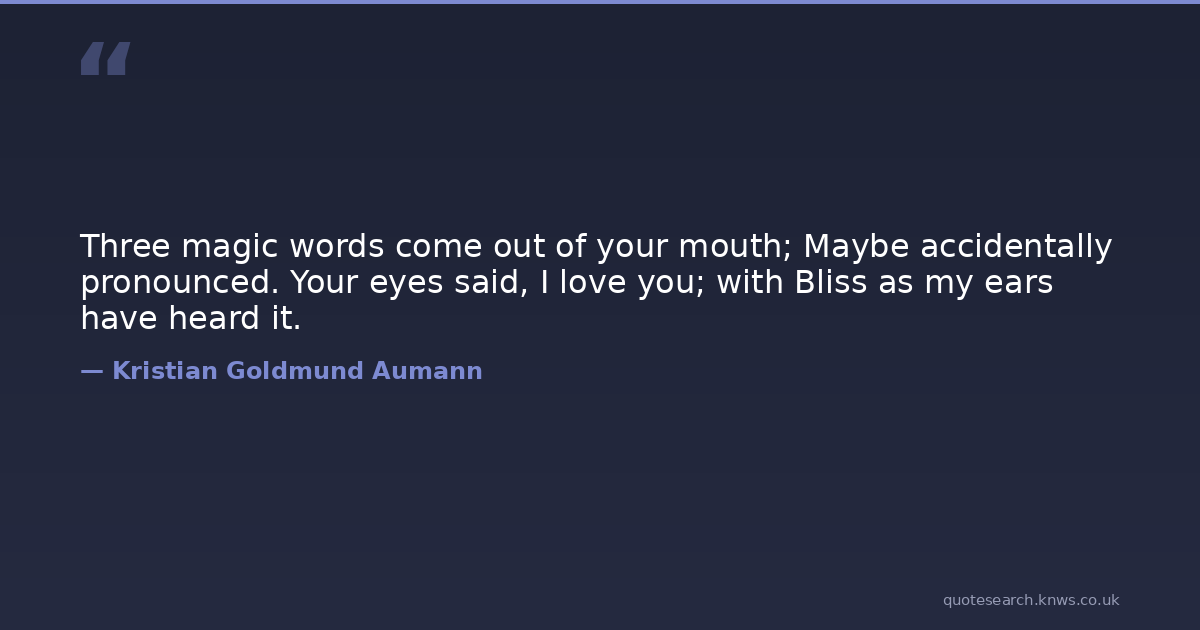 Three magic words come out of your mouth; Maybe accidentally pronounced. Your eyes said, I love you; with Bliss as my ears have heard it.