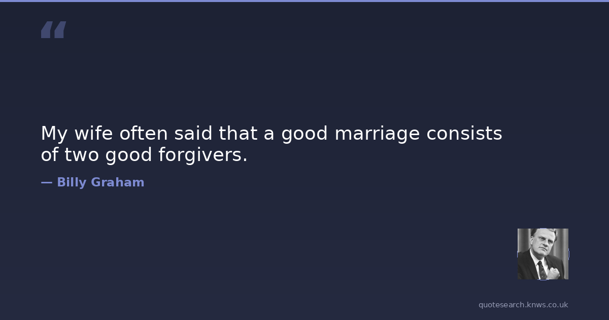 My wife often said that a good marriage consists of two good forgivers.