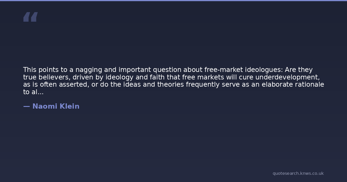 This points to a nagging and important question about free-market ideologues: Are they true believers, driven by ideology and faith that free markets will cure underdevelopment, as is often asserted, or do the ideas and theories frequently serve as an elaborate rationale to allow people to act on unfettered greed while still invoking an altruistic motive?