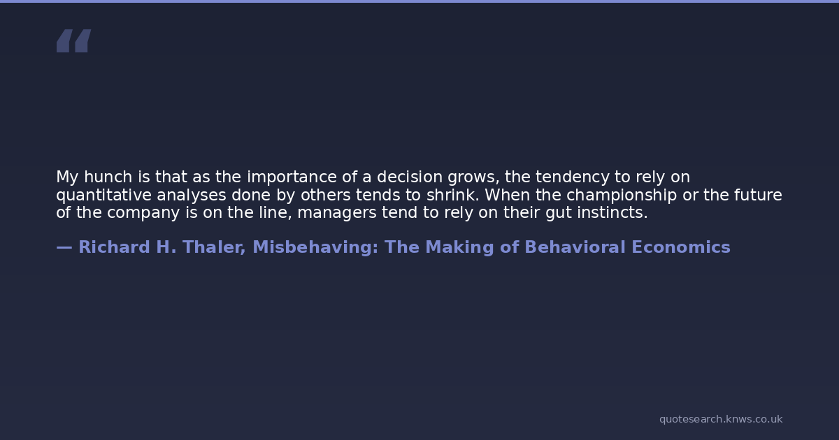 My hunch is that as the importance of a decision grows, the tendency to rely on quantitative analyses done by others tends to shrink. When the championship or the future of the company is on the line, managers tend to rely on their gut instincts.