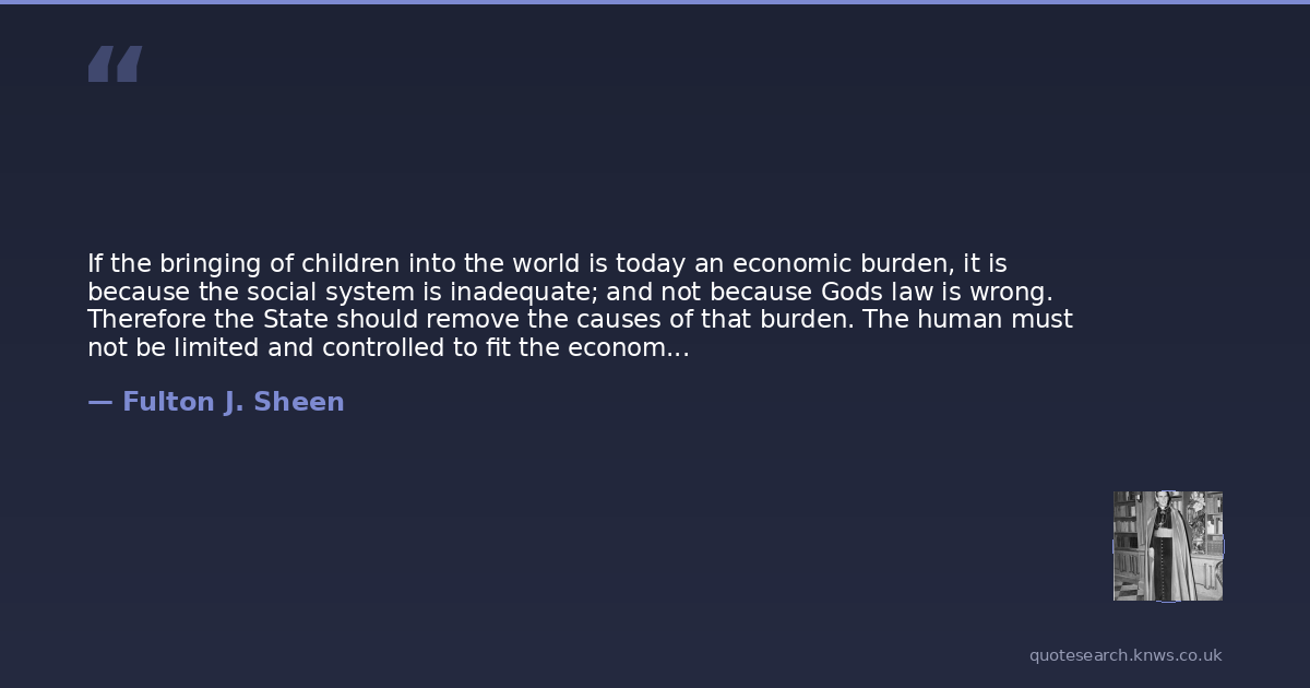If the bringing of children into the world is today an economic burden, it is because the social system is inadequate; and not because Gods law is wrong. Therefore the State should remove the causes of that burden. The human must not be limited and controlled to fit the economic, but the economic must be expanded to fit the human.