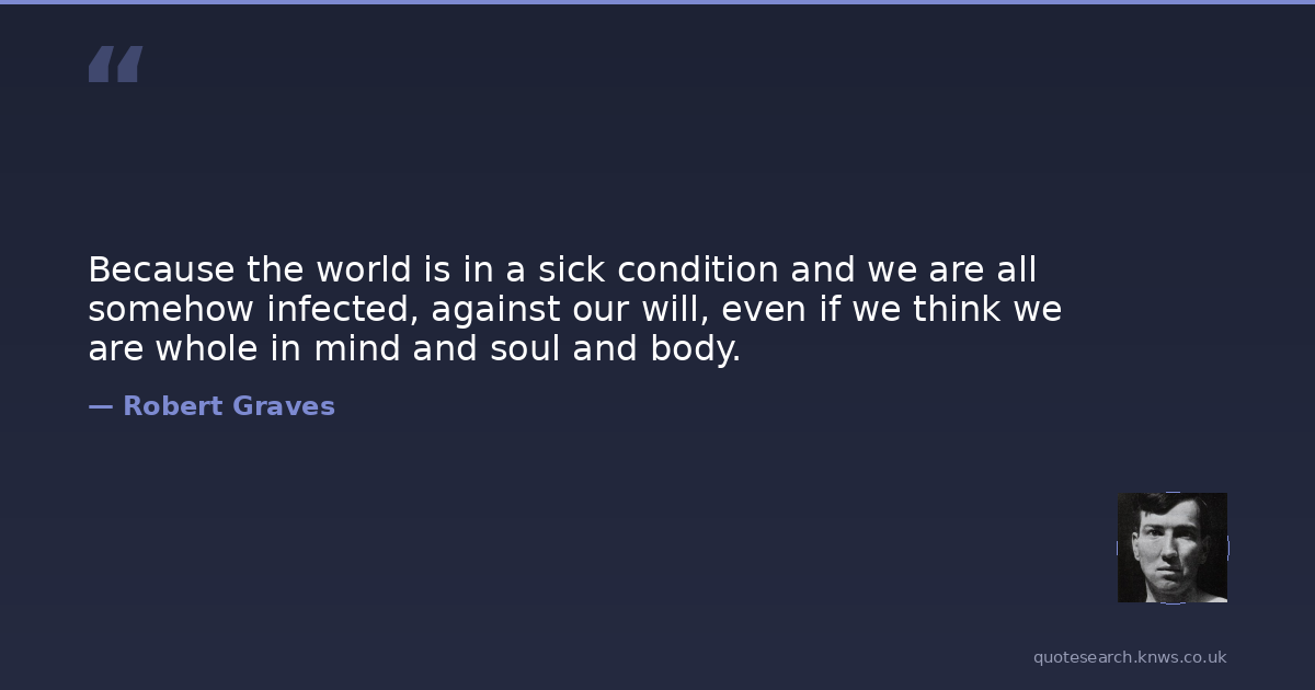 Because the world is in a sick condition and we are all somehow infected, against our will, even if we think we are whole in mind and soul and body.