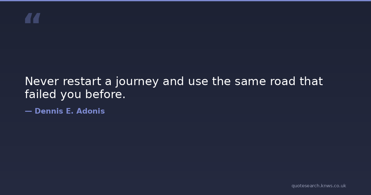 Never restart a journey and use the same road that failed you before. challenges courage failures life new-beginning progress restart start-again wisdom Download Image Share on X Share on Facebook Copy Link