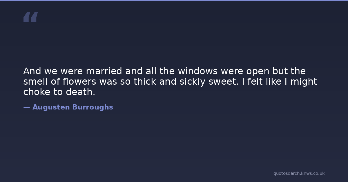 And we were married and all the windows were open but the smell of flowers was so thick and sickly sweet. I felt like I might choke to death.