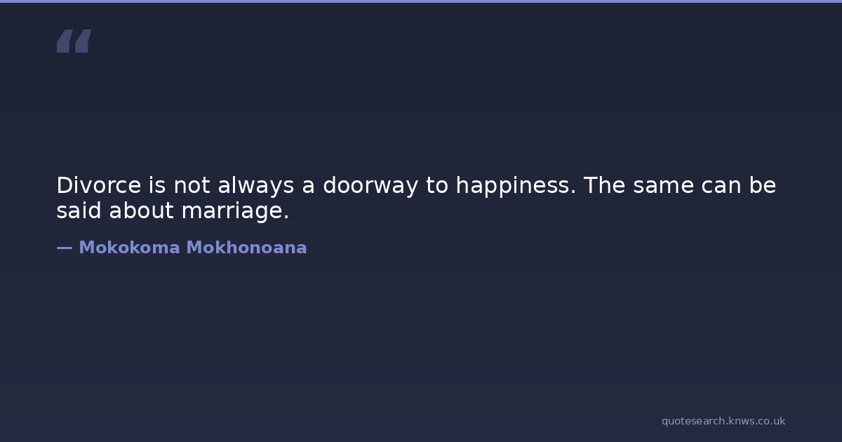 Divorce is not always a doorway to happiness. The same can be said about marriage.