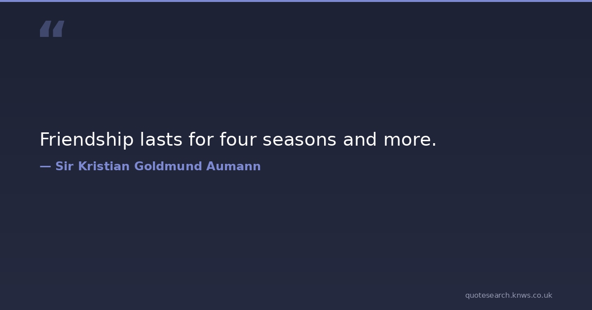 Friendship lasts for four seasons and more. friendship-quotes Download Image Share on X Share on Facebook Copy Link