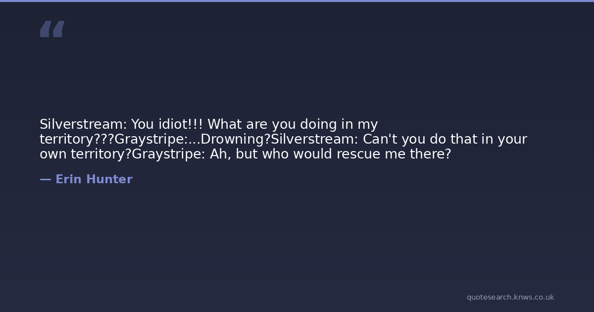 Silverstream: You idiot!!! What are you doing in my territory???Graystripe:...Drowning?Silverstream: Can't you do that in your own territory?Graystripe: Ah, but who would rescue me there?