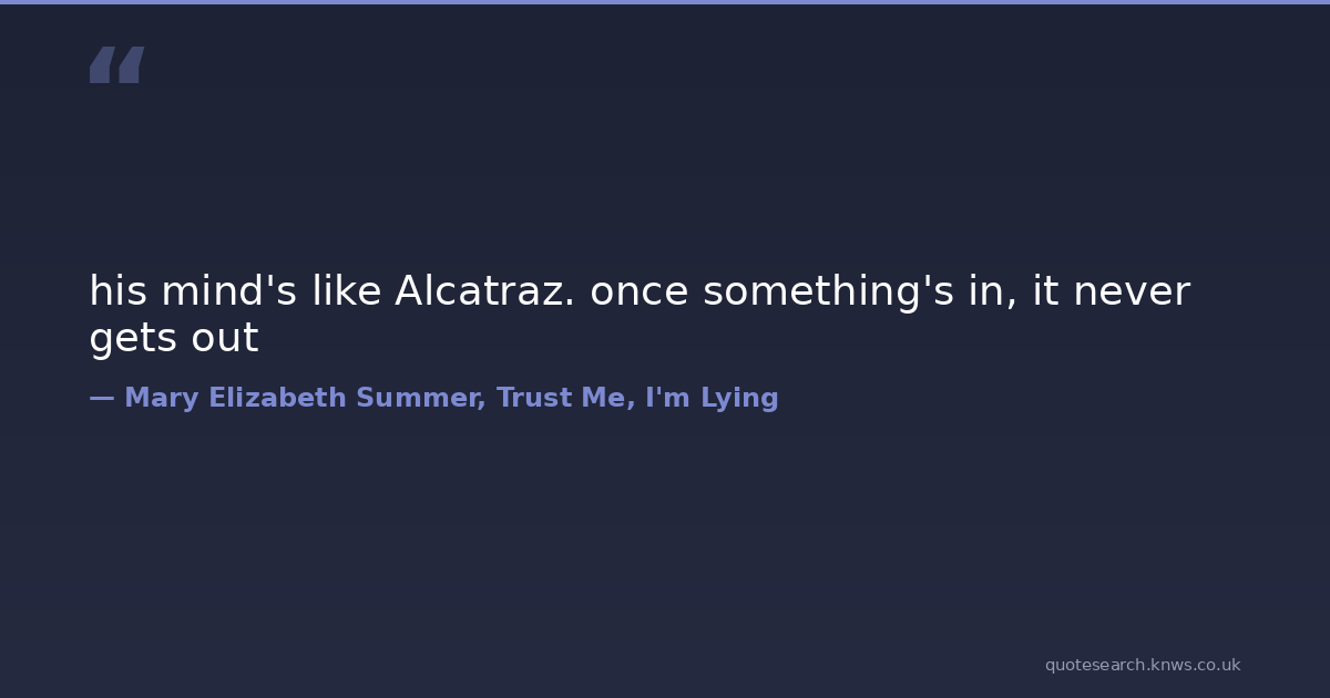 his mind's like Alcatraz. once something's in, it never gets out humor sarcasm Download Image Share on X Share on Facebook Copy Link