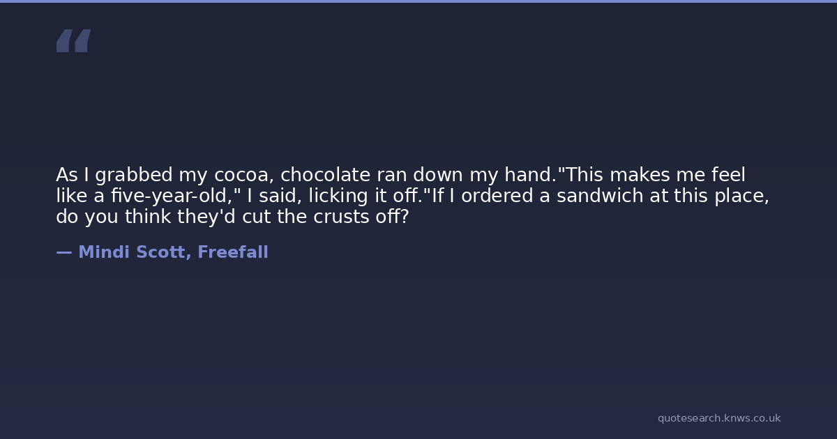 As I grabbed my cocoa, chocolate ran down my hand."This makes me feel like a five-year-old," I said, licking it off."If I ordered a sandwich at this place, do you think they'd cut the crusts off?