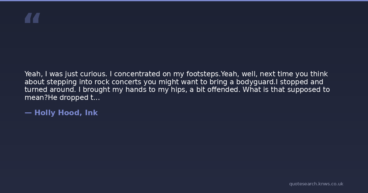 Yeah, I was just curious. I concentrated on my footsteps.Yeah, well, next time you think about stepping into rock concerts you might want to bring a bodyguard.I stopped and turned around. I brought my hands to my hips, a bit offended. What is that supposed to mean?He dropped the end of the bat into the sand. It means your small.