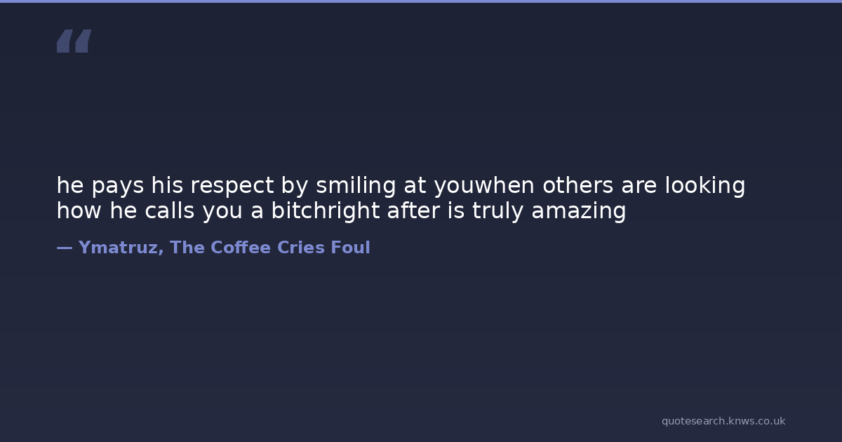 he pays his respect by smiling at youwhen others are looking how he calls you a bitchright after is truly amazing