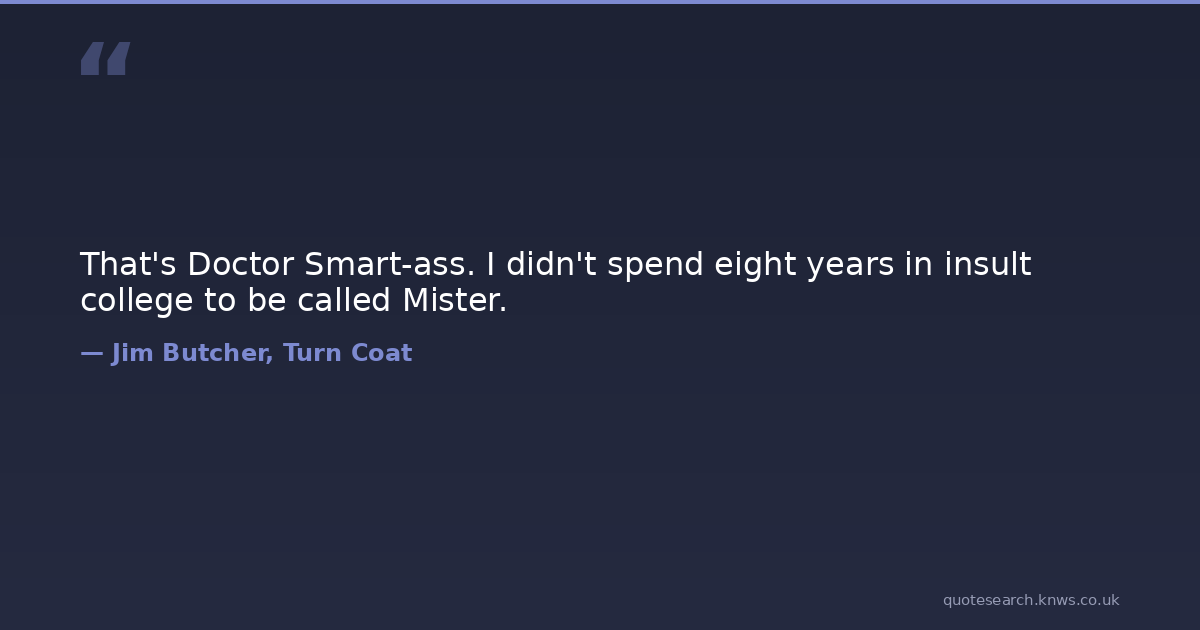 That's Doctor Smart-ass. I didn't spend eight years in insult college to be called Mister.