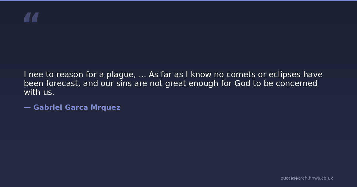 I nee to reason for a plague, ... As far as I know no comets or eclipses have been forecast, and our sins are not great enough for God to be concerned with us.