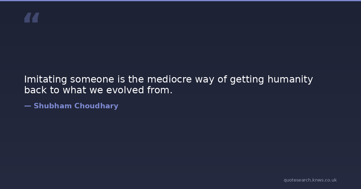 Imitating someone is the mediocre way of getting humanity back to what we evolved from. deep sarcasm satire Download Image Share on X Share on Facebook Copy Link