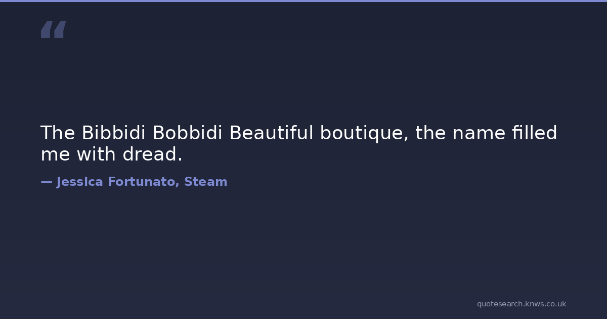 The Bibbidi Bobbidi Beautiful boutique, the name filled me with dread. heart sarcasm wordplay work Download Image Share on X Share on Facebook Copy Link