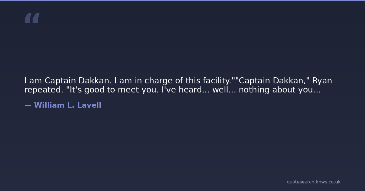 I am Captain Dakkan. I am in charge of this facility.""Captain Dakkan," Ryan repeated. "It's good to meet you. I've heard... well... nothing about you...