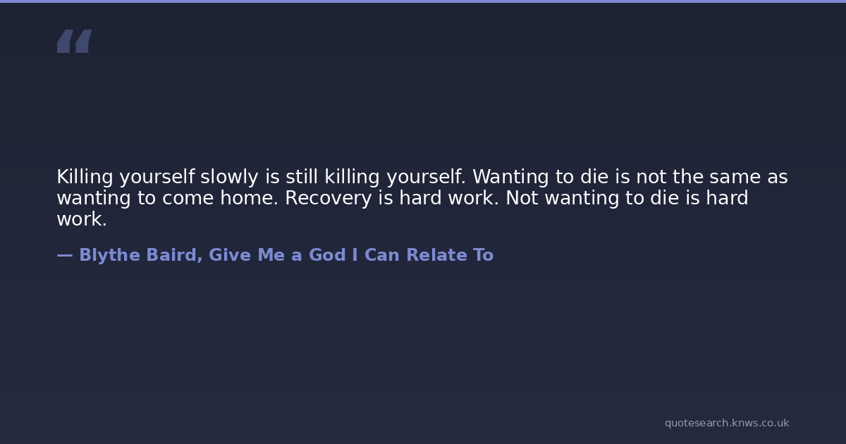 Killing yourself slowly is still killing yourself. Wanting to die is not the same as wanting to come home. Recovery is hard work. Not wanting to die is hard work.
