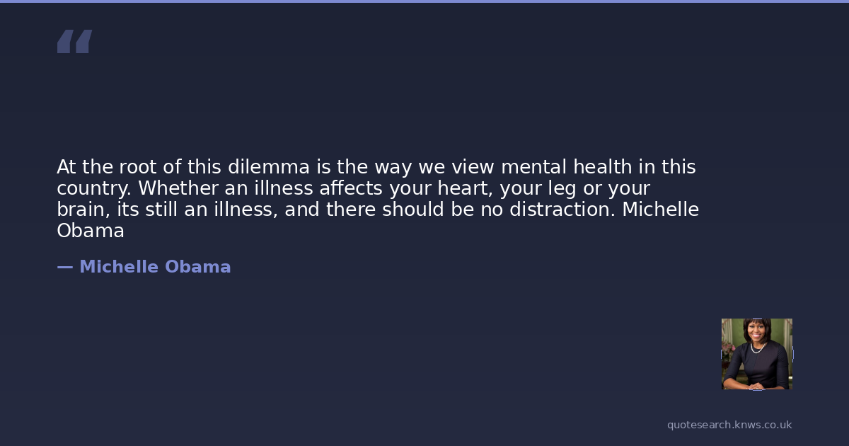 At the root of this dilemma is the way we view mental health in this country. Whether an illness affects your heart, your leg or your brain, its still an illness, and there should be no distraction. Michelle Obama