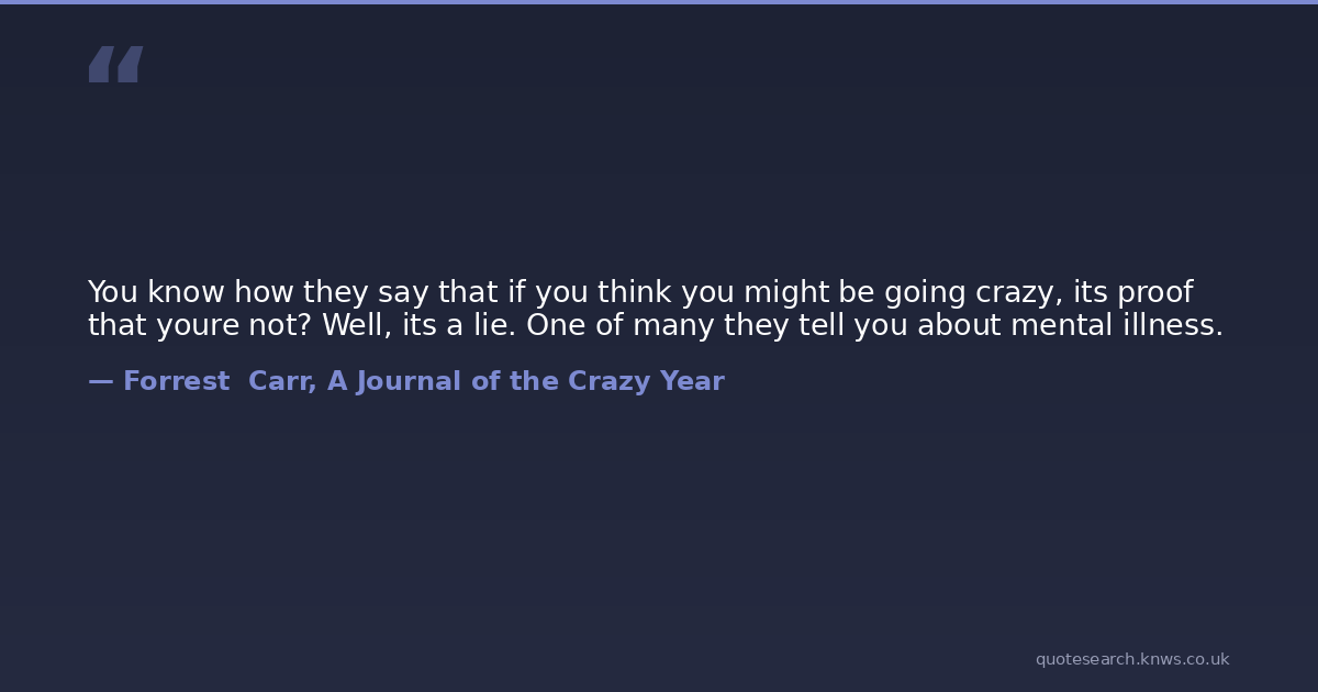 You know how they say that if you think you might be going crazy, its proof that youre not? Well, its a lie. One of many they tell you about mental illness.