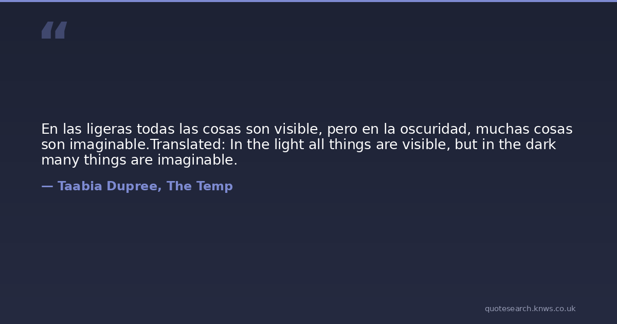 En las ligeras todas las cosas son visible, pero en la oscuridad, muchas cosas son imaginable.Translated: In the light all things are visible, but in the dark many things are imaginable.