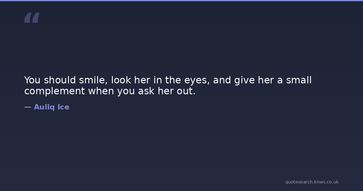 You should smile, look her in the eyes, and give her a small complement when you ask her out. dating falling-in-love love love-at-first-sight marriage sex Download Image Share on X Share on Facebook Copy Link