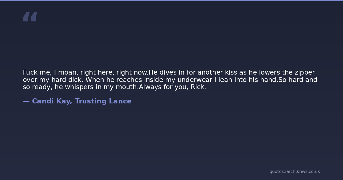 Fuck me, I moan, right here, right now.He dives in for another kiss as he lowers the zipper over my hard dick. When he reaches inside my underwear I lean into his hand.So hard and so ready, he whispers in my mouth.Always for you, Rick.