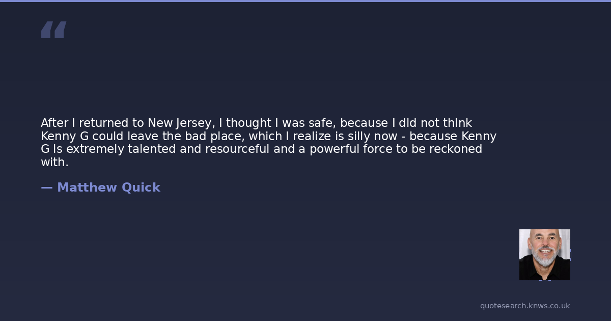 After I returned to New Jersey, I thought I was safe, because I did not think Kenny G could leave the bad place, which I realize is silly now - because Kenny G is extremely talented and resourceful and a powerful force to be reckoned with.