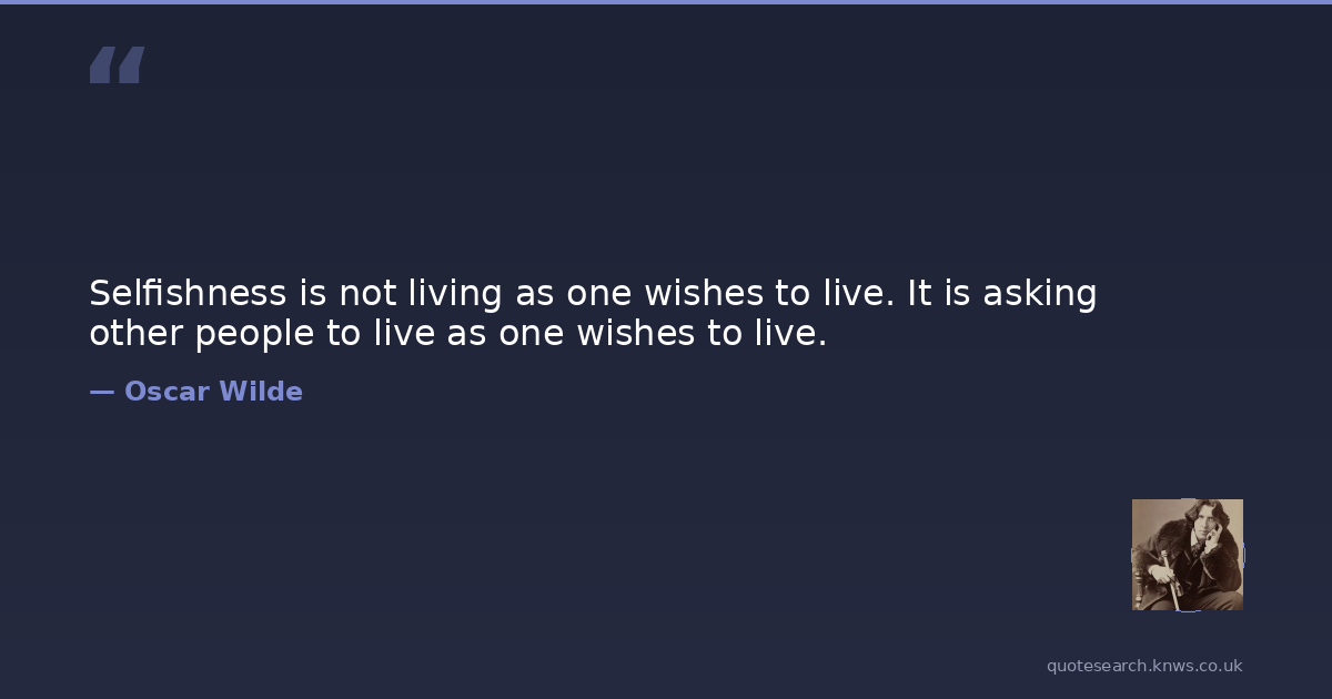 Selfishness is not living as one wishes to live. It is asking other people to live as one wishes to live.
