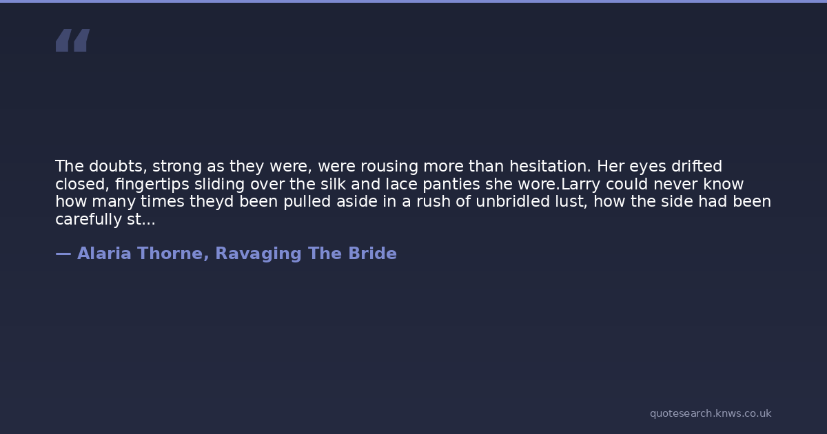 The doubts, strong as they were, were rousing more than hesitation. Her eyes drifted closed, fingertips sliding over the silk and lace panties she wore.Larry could never know how many times theyd been pulled aside in a rush of unbridled lust, how the side had been carefully stitched after theyd been ripped from her in a bar bathroom a few years ago by a man whose name she didnt even know. She found her fingers at the seam, her breath shallow and shaking as she remembered the way his rough, callused fingers felt inside her, the ache of his teeth at her shoulder, the sound of his growling moans as he gripped her hair and plunged deep into her throat. She could still smell the whiskey on his breath, the stifling cloud of smoke that permeated every part of the hole-in-the-wall bar