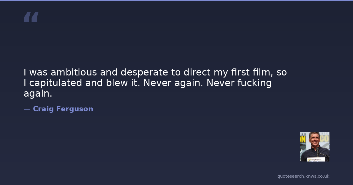I was ambitious and desperate to direct my first film, so I capitulated and blew it. Never again. Never fucking again.