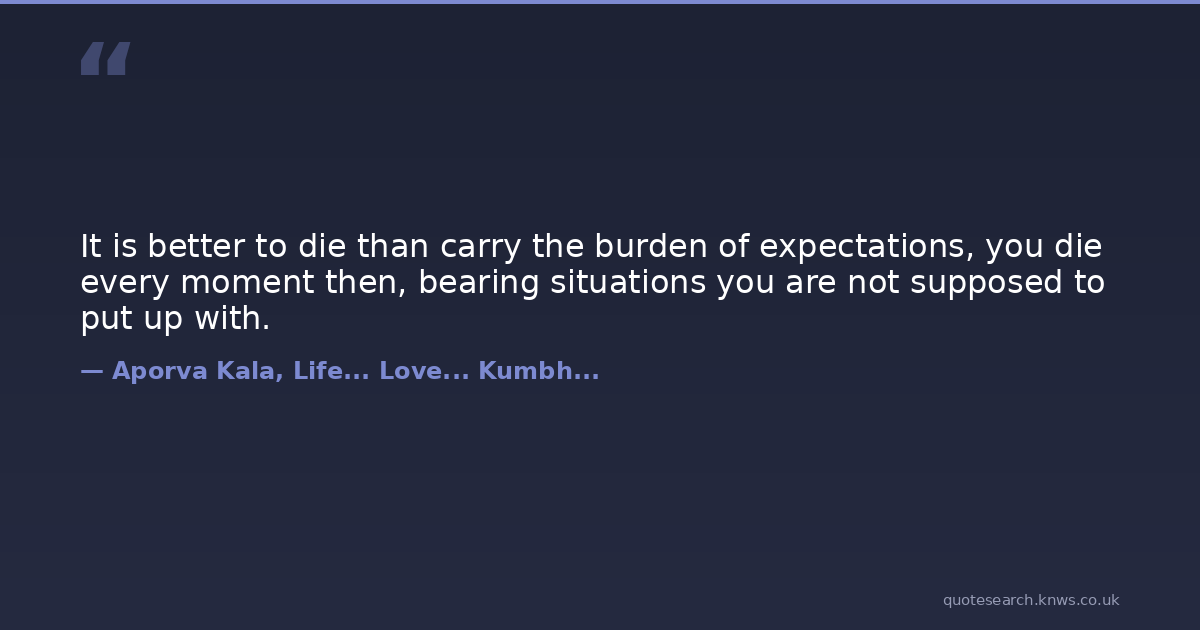It is better to die than carry the burden of expectations, you die every moment then, bearing situations you are not supposed to put up with.