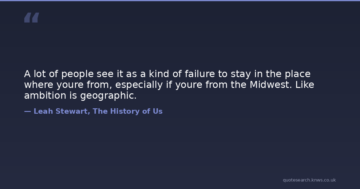 A lot of people see it as a kind of failure to stay in the place where youre from, especially if youre from the Midwest. Like ambition is geographic.
