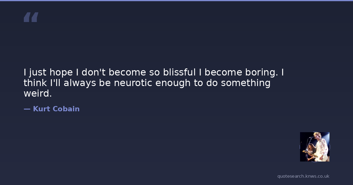 I just hope I don't become so blissful I become boring. I think I'll always be neurotic enough to do something weird.