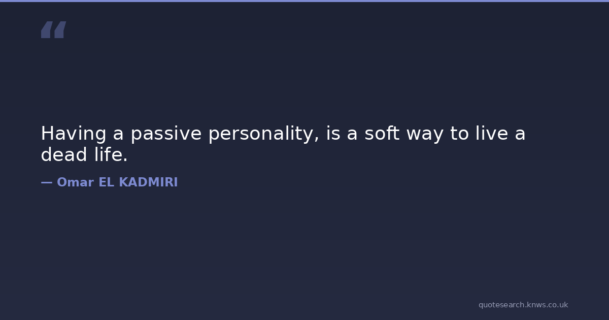 Having a passive personality, is a soft way to live a dead life. passive passive-personality personality Download Image Share on X Share on Facebook Copy Link
