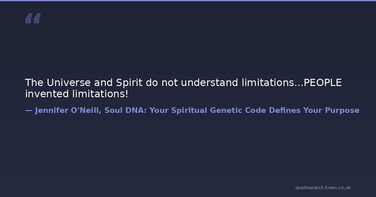 The Universe and Spirit do not understand limitations...PEOPLE invented limitations!
