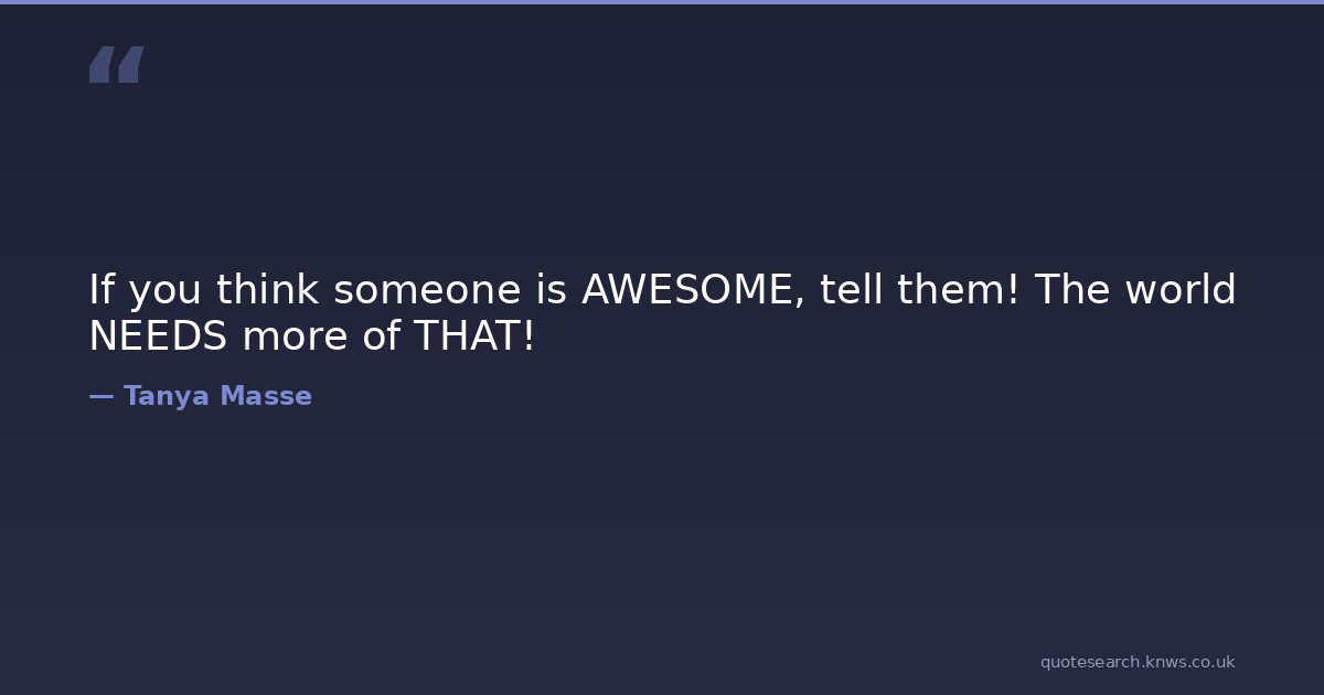 If you think someone is AWESOME, tell them! The world NEEDS more of THAT! awesome-quotes awesomeness quotes-on-life quotes-to-live-by Download Image Share on X Share on Facebook Copy Link