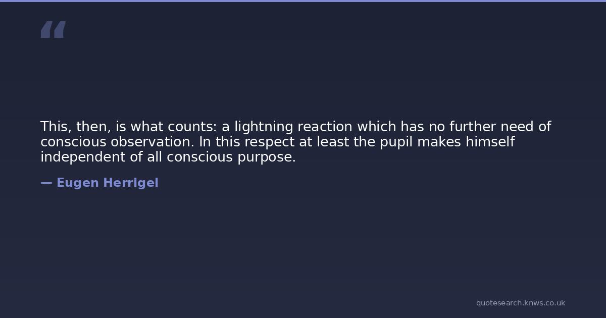 This, then, is what counts: a lightning reaction which has no further need of conscious observation. In this respect at least the pupil makes himself independent of all conscious purpose.
