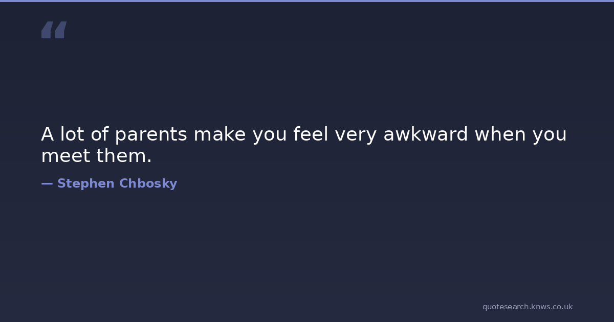 A lot of parents make you feel very awkward when you meet them.