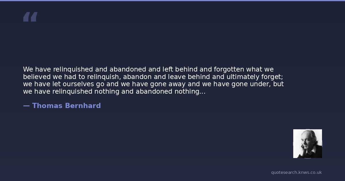 We have relinquished and abandoned and left behind and forgotten what we believed we had to relinquish, abandon and leave behind and ultimately forget; we have let ourselves go and we have gone away and we have gone under, but we have relinquished nothing and abandoned nothing and left behind nothing and forgotten nothing; we have in reality extinguished nothing whatsoever, because our parents did not inform us of or enlighten us about the fact that our life-process is in reality nothing but a process of illness. We were up above, in the company of our parents, locked up in our walls and in our rooms and in our books and papers and everything around us and in us was nothing but lethal and we are down below, without our parents, again locked up in these walls and in our rooms and in our books and papers and everything around us and in us is nothing but lethal.