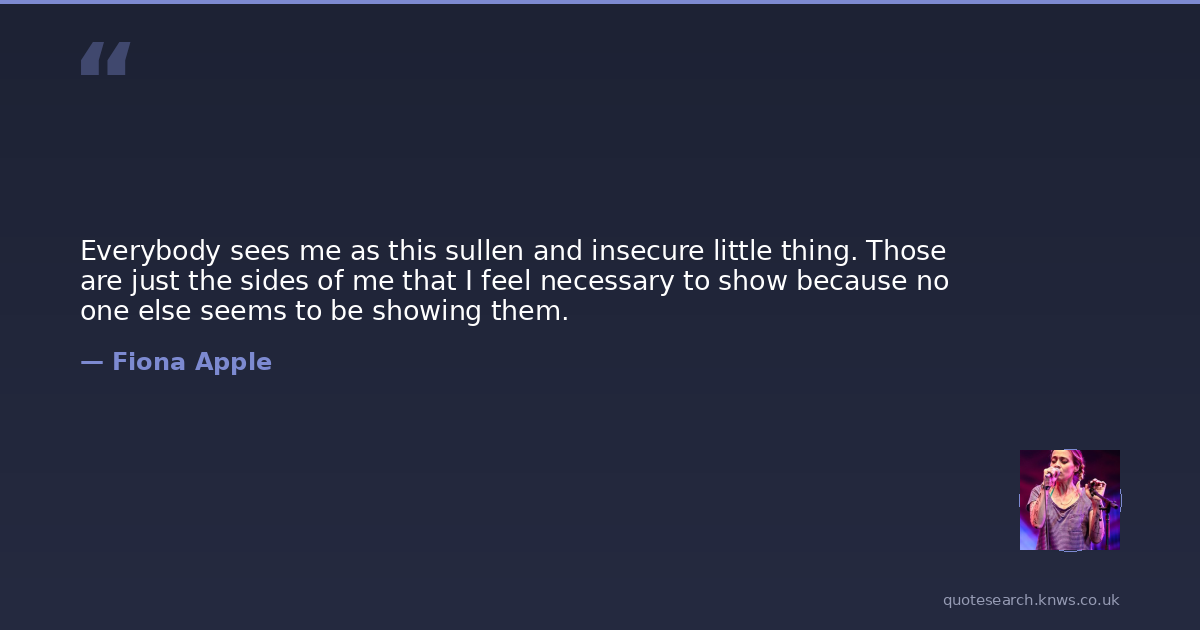 Everybody sees me as this sullen and insecure little thing. Those are just the sides of me that I feel necessary to show because no one else seems to be showing them.