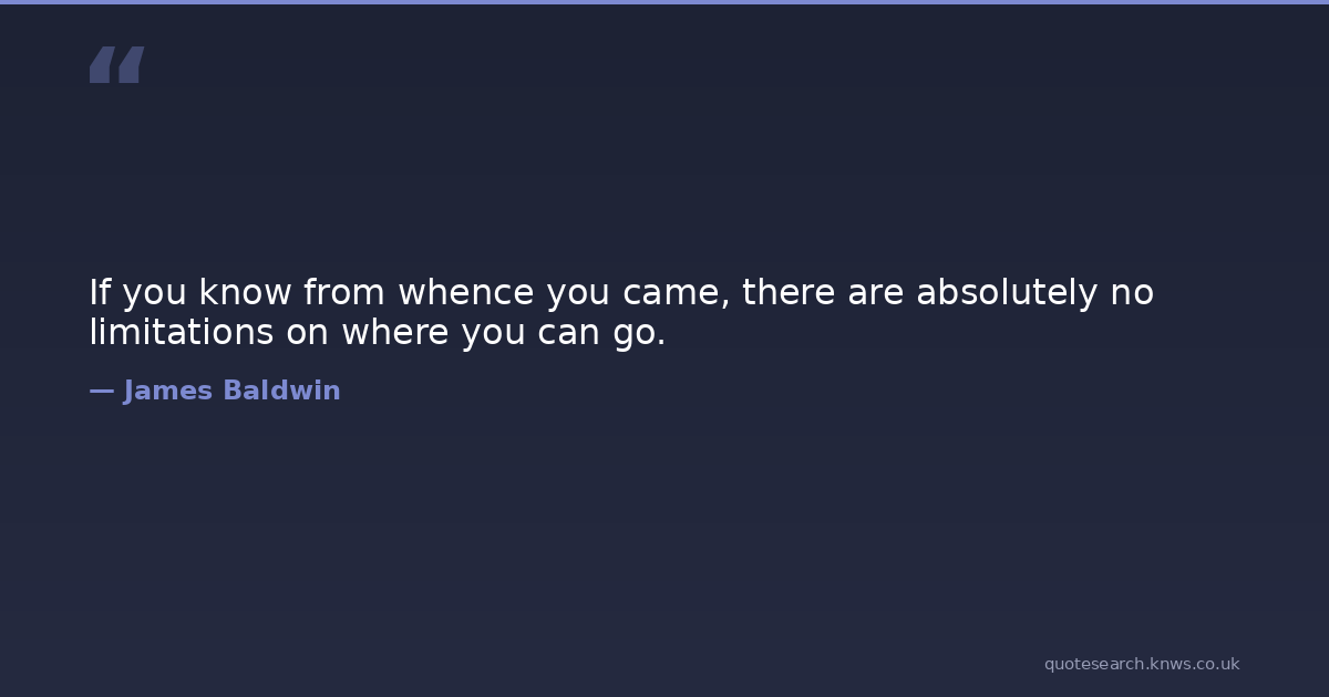 If you know from whence you came, there are absolutely no limitations on where you can go. james-baldwin writing-life Download Image Share on X Share on Facebook Copy Link