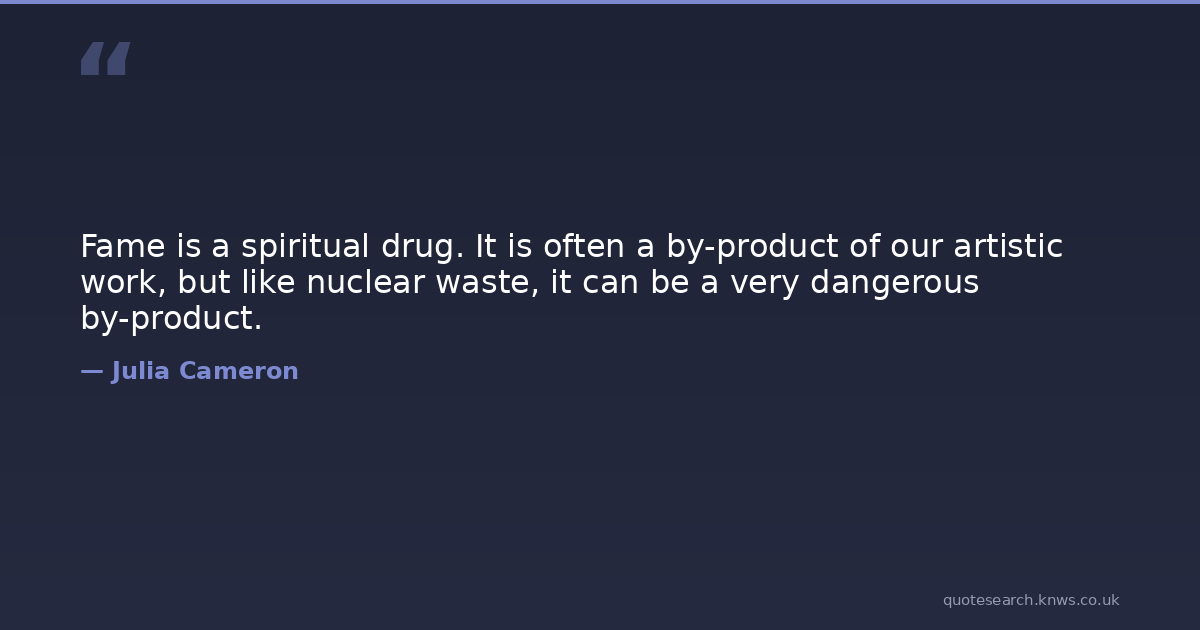 Fame is a spiritual drug. It is often a by-product of our artistic work, but like nuclear waste, it can be a very dangerous by-product.